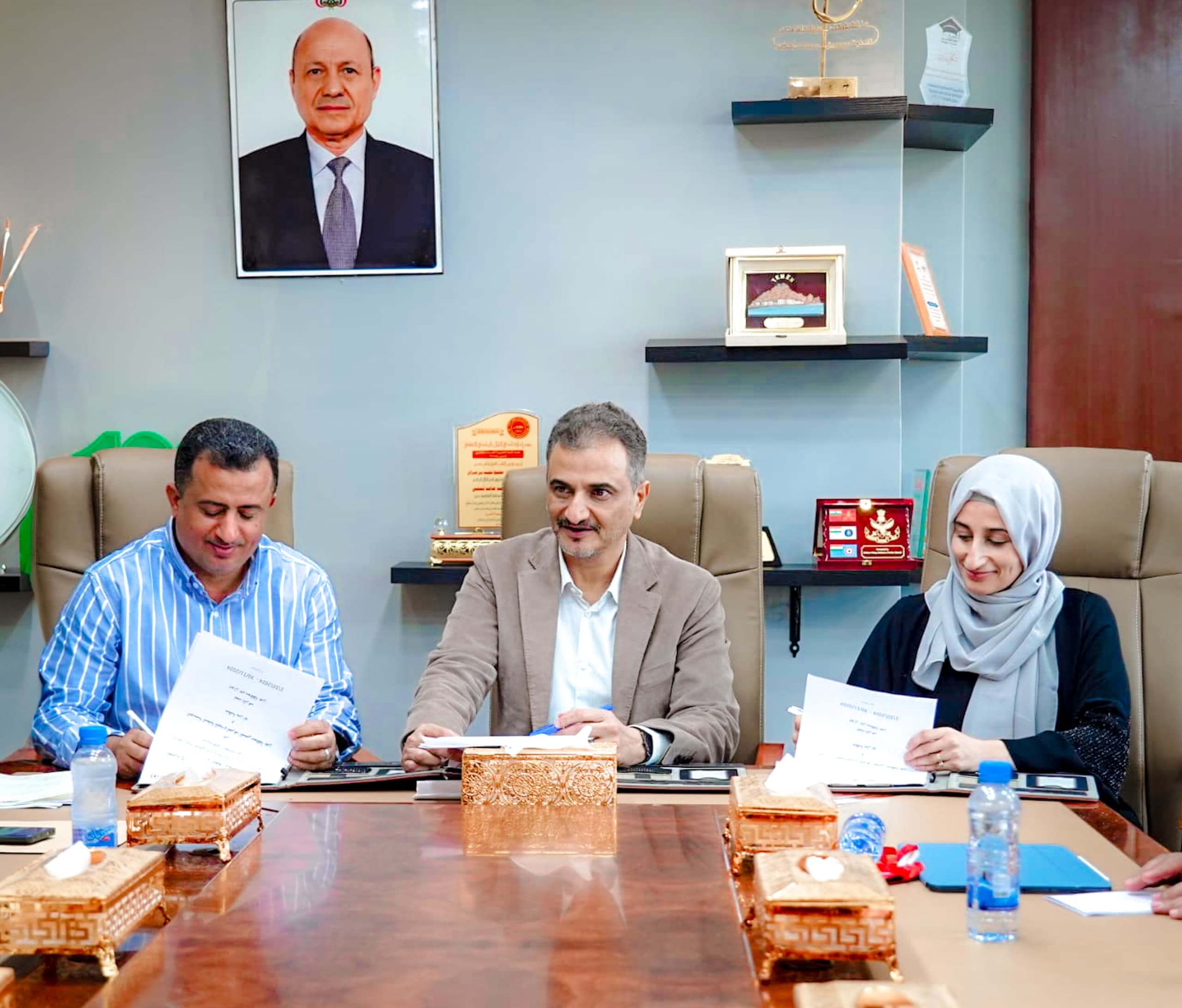 حضر التوقيع، انتصار مرشد مديرة مكتب التخطيط والتعاون الدولي بالعاصمة عدن ، وهدى الكازمي مديرة مكتب الإعلام، ورضا جميل حاجب مستشار المحافظ لشؤون المنظمات.