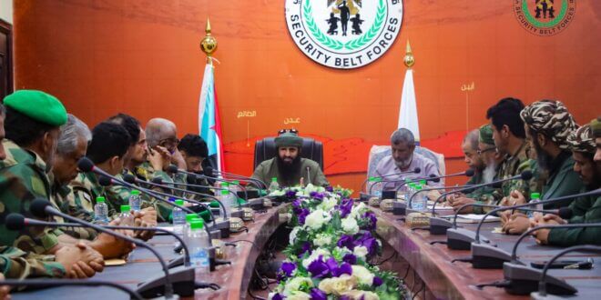 وخلال الاجتماع، تحدث العميد الوالي، بشكل مستفيض، عن أبرز التحديات الأمنية الراهنة، بما في ذلك جهود مكافحة الإرهاب، والجريمة المنظمة، ومكافحة المخدرات وعمليات التهريب، وتأمين الخطوط الحيوية والمواقع الاستراتيجية في المحافظات الجنوب، مُشيدًا بالإنجازات والانتصارات الأمنية التي تحققها قوات الحزام الأمني في العاصمة الجنوبية عدن، ومحافظات (أبين، ولحج، والضالع)، مشددًا على بذل المزيد من الجهود لمواجهة التحديات الراهنة.