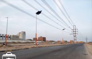 نور الخط الرئيسي من مدينة الشعب إلى إنماء الجديدة بمديرية البريقة في العاصمة عدن بكشافات الطاقة الشمسية عقب سنوات من الظلام الدامس.