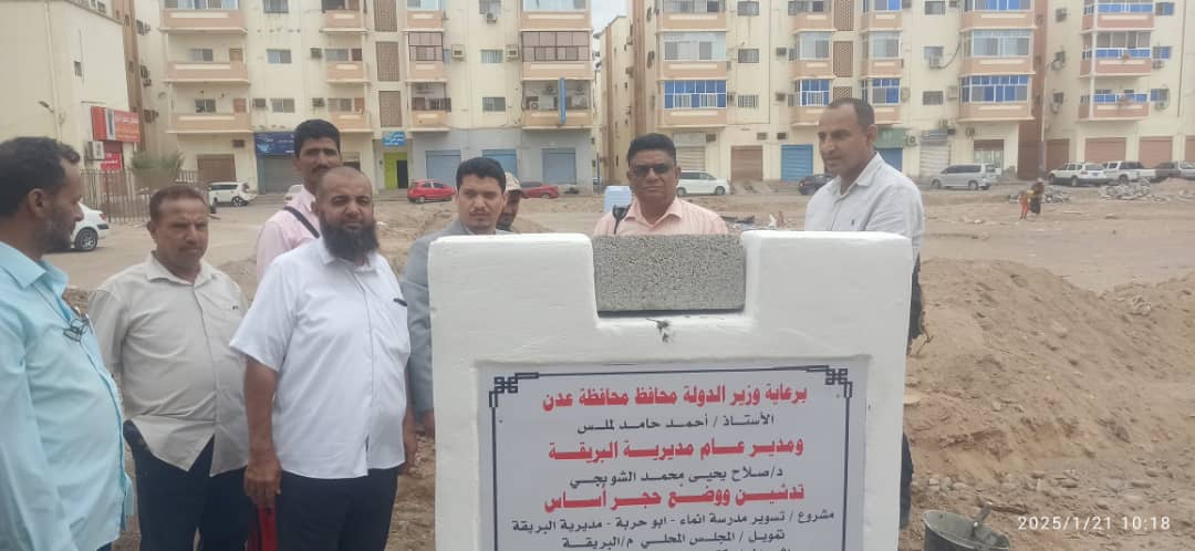 تحت رعاية معالي الأستاذ أحمد حامد لملس، وزير الدولة – محافظ العاصمة عدن، قام الدكتور صلاح يحيى الشوبجي مدير عام البريقة – رئيس المجلس المحلي، بوضع حجر الأساس لمشروع بناء سور لمدرسة إنماء القديمة، بتمويل ذاتي من السلطة المحلية بالمديرية.