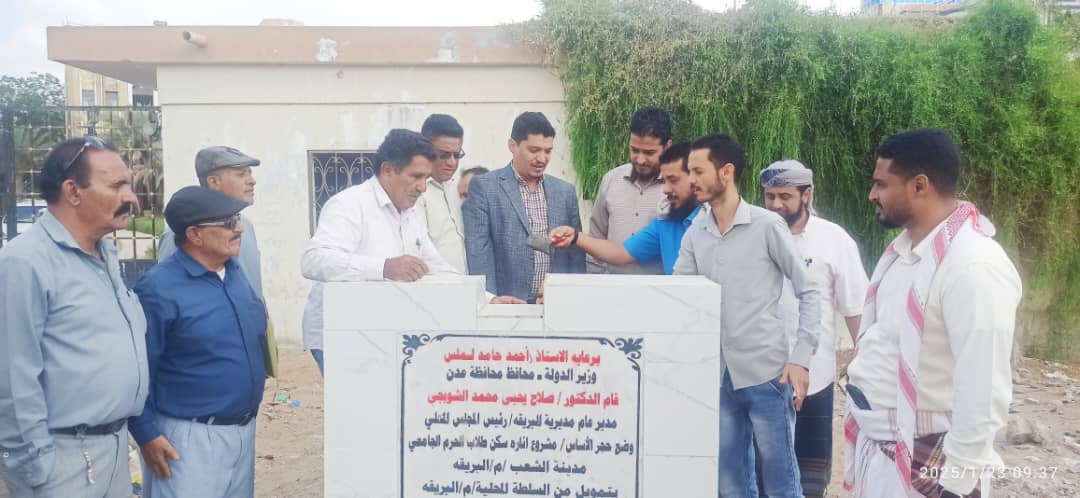 وخلال وضع حجر الأساس للمشروع الذي يأتي برعاية معالي وزير الدولة – محافظ العاصمة عدن الأستاذ أحمد حامد لملس، أكد ” د. الشوبجي ” على أهمية هذه المشروع الذي يهدف لتبديد الظلام في السكن الطلابي وإنارته باستدامة بالطاقة الشمسية، نحو خلق بيئة ملائمة لطلاب الدراسات العليا بالسكن.