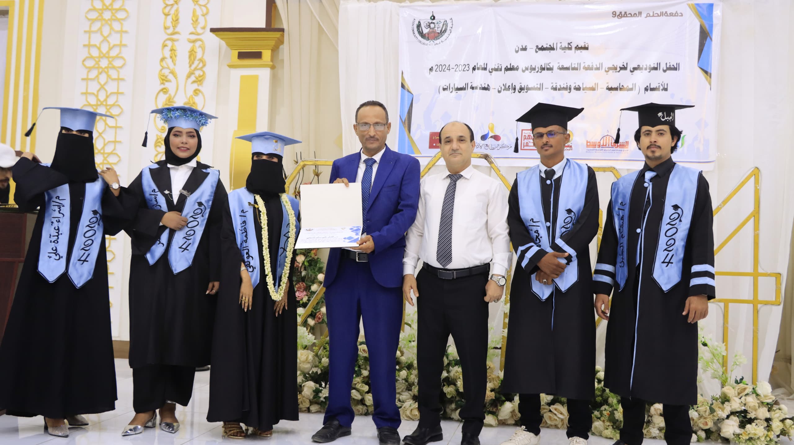 احتفلت كلية المجتمع في مديرية دارسعد بالعاصمة عدن صباح اليوم السبت بتخرج 126 طالبًا وطالبة من حملة شهادات البكالوريوس للعام الجامعي للعام 2023-2024م، وذلك بحضور ورعاية كريمة من مدير عام مديرية دارسعد ورئيس المجلس المحلي، الأستاذ عبود ناجي حسين، ورئيس تنفيذية انتقالي المديرية، الأستاذ حسين علي عباد، وعدد من قيادات السلطة المحلية بدارسعد.