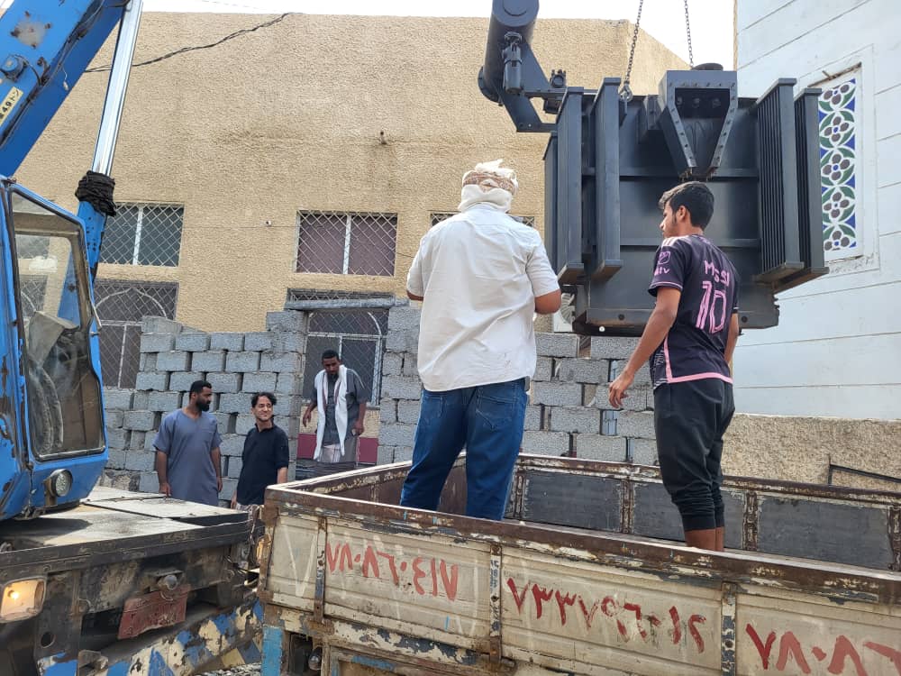 نفذت المؤسسة العامة للكهرباء منطقة عدن تحت اشراف من قبل مدير عام المؤسسة العامة للكهرباء منطقة عدن المهندس/ سالم الوليدي ومدير المنطقه الثانية الأستاذ / عبدالله الشعبي ومندوب مؤسسة الكهرباء بالمديرية الاستاذ / بسام فضل الحمادي ، أعمال نقل وإنزال وتركيب محول كهربائي جديد بقدرة 500kvA في حي الشهداء بمنطقة دارسعد الشرقية ، مصحوبا بمواد “، كببل ضغط عالي ولوحة مفاتيح وتحكم مع ملحقاتها بالاضافة إلى الأعمدة ، وكل ذلك على نفقة المؤسسة العامة للكهرباء م عدن والمنطقة الثانية ، ضمن برامج المنطقة وادارة التوزيع التخفيف وتوزيع الاحمال والحد من الاختناقات الواقعه في الشبكة وتجنب تلف المحولات وتساقط الأسلاك ، بسبب الربط العشوائي والمزدوج .