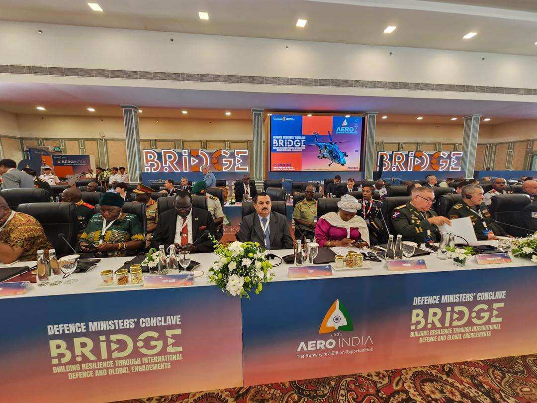 وفي كلمته خلال المؤتمر، أشاد وزير الدفاع بمستوى الترتيب والتنظيم للمعرض الدولي الجوي ومعرض الطيران، ومؤتمر بريدج لوزراء الدفاع في جمهورية الهند الصديقة.. منوهاً بالعلاقات العريقة بين البلدين وموقف الهند الداعم لبلادنا وتقديمها المساعدات في عدد من المجالات خصوصاً تأهيل وتدريب الكوادر في المنشآت التعليمية الهندية.