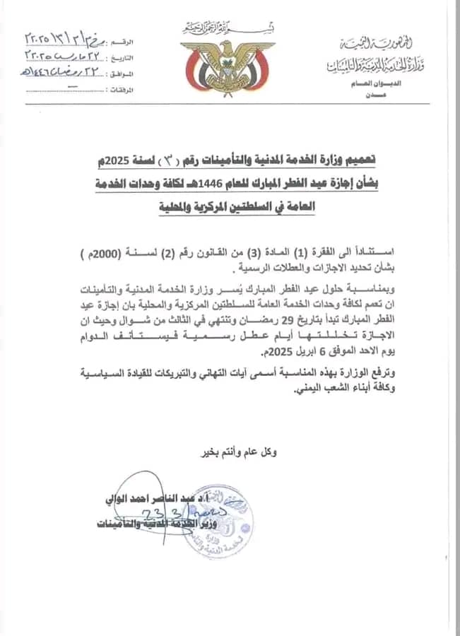 تأتي هذه الإجازة في إطار حرص الوزارة على منح الموظفين فرصة كافية للاحتفال بالعيد، بما يضمن التوازن بين متطلبات العمل وأجواء الفرح العائلية.