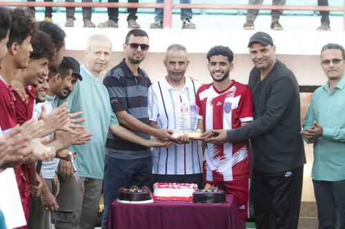 وفي اجواء رائعة ممزوجة بالوفاء والمشاعر الجياشة والمعبرة من زملائه اللاعبين وبحضور عمر الخضيري امين عام النادي، وناصر بامحروس الأمين العام المساعد، وأمين قاسم المفلحي المسؤول المالي، ومسؤول الإعلام و الثقافة وهبي بحصو والمدرب الوطني محمد حسن البعداني مدرب الفريق الكروي الأول بالنادي. أقيمت احتفالية بسيطة للكابتن وتمثلت في مباراة لكرة القدم عقبها تكريم مقدم من إدارة النادي.