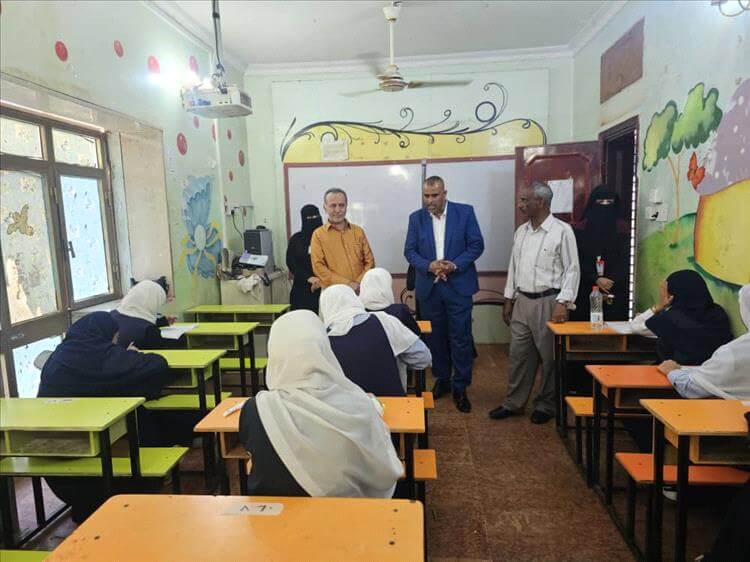 وكيل شؤون التعليم بالعاصمة عدن يزور مدرسة التفوق الاهلية ويتفقد سير الامتحانات