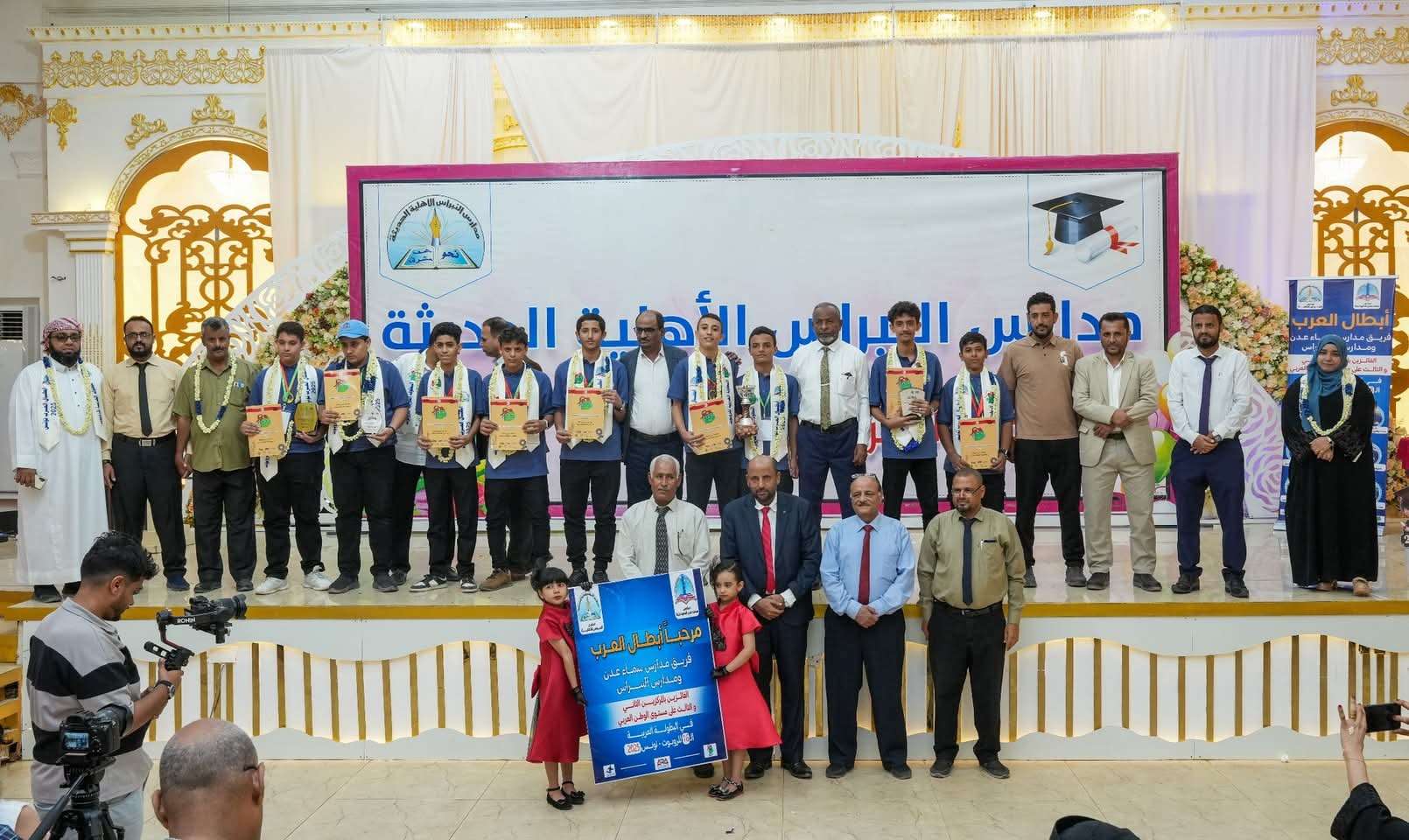 كما شهد الحفل حضور الأكاديمي والباحث المعروف الدكتور علي صالح الخلاقي، إلى جانب عدد كبير من أولياء الأمور والتربويين والإعلاميين الذين توافدوا لمشاركة الأبطال فرحة التتويج ورفع راية الوطن.