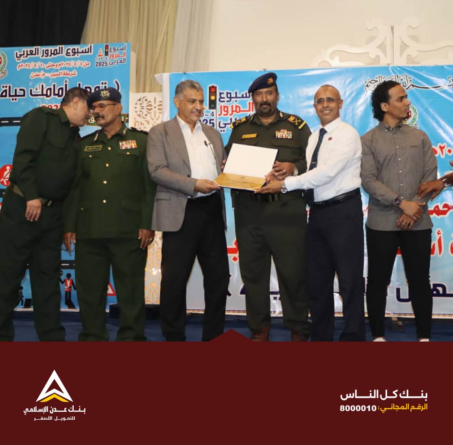 وقال البنك في صفحته الرسمية: “في إطار التزامنا بالمسؤولية المجتمعية وتعزيز الوعي المروري، سُعدنا في بنك عدن الإسلامي بالمشاركة في أسبوع المرور العربي 2025”.