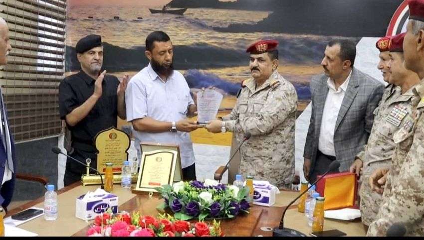 وقدم وزير الدفاع للعميد العمري درعا تكريميا تقديرًا لجهوده وإسهاماته الفاعلة خلال فترة توليه إدارة فرع المؤسسة بعدن.