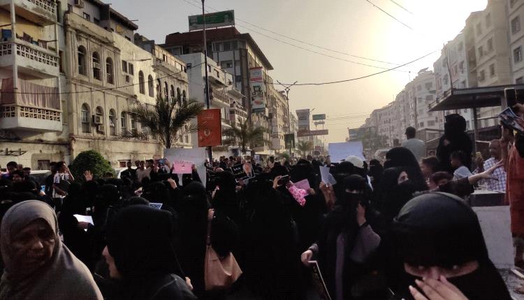 شهد شارع المعلا بالعاصمة عدن، مساء اليوم، تظاهرة نسوية، احتجاجًا على تدهور الخدمات العامة، وعلى رأسها انقطاع الكهرباء والمياه، وتدهور القطاع الصحي والتعليمي.