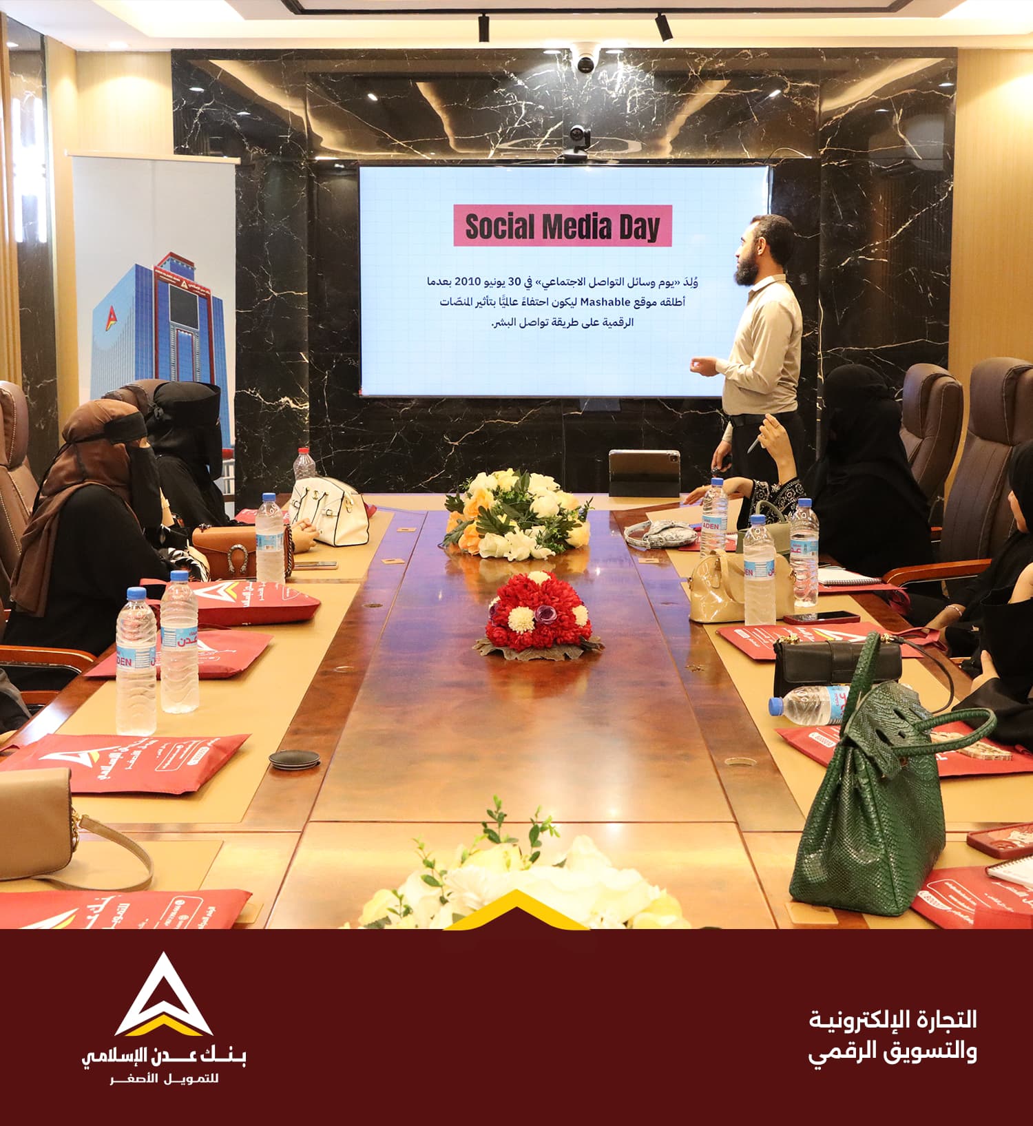 بمناسبة اليوم العالمي لمنصات التواصل الاجتماعي نظّم بنك عدن الإسلامي للتمويل الأصغر* ندوة نوعية بعنوان “تعزيز التجارة الإلكترونية والترويج الرقمي” ، استهدفت 18 رائدة في مجالي البيع عبر الإنترنت والتسويق الرقمي بينهن تاجرات من منصة شي إن ومسوقات مستقلات.