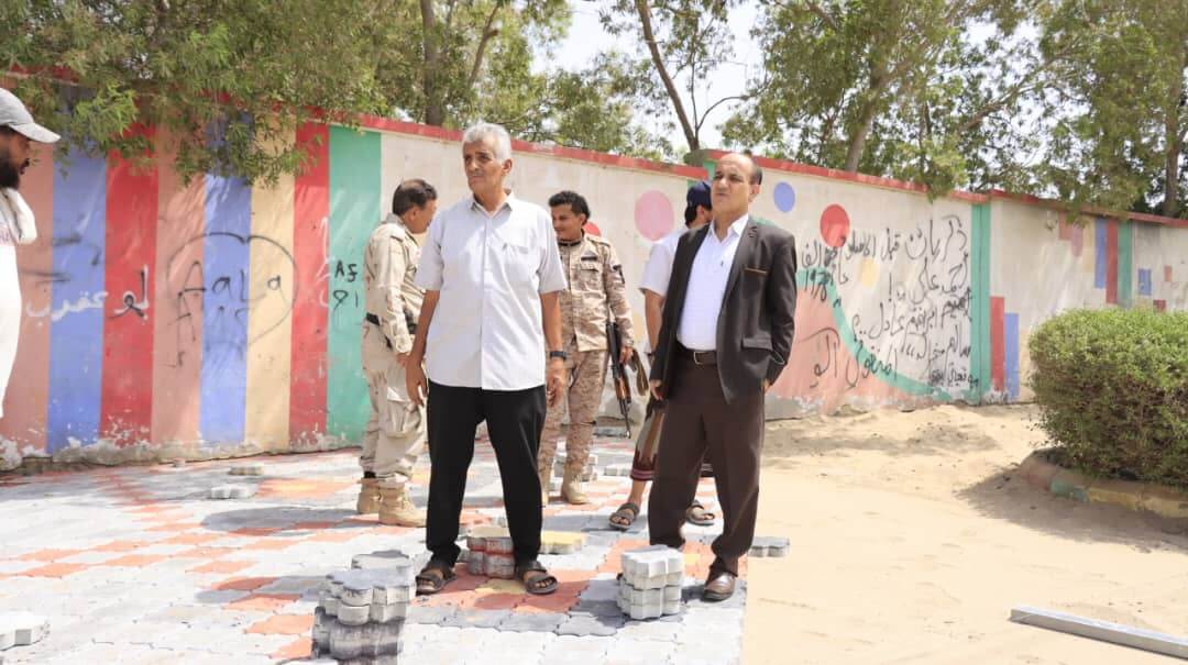 مأمور دارسعد يتفقد مستوى الإنجاز في أعمال ترميم وإعادة تأهيل المتنفس المجاور لثانوية زينب علي قاسم