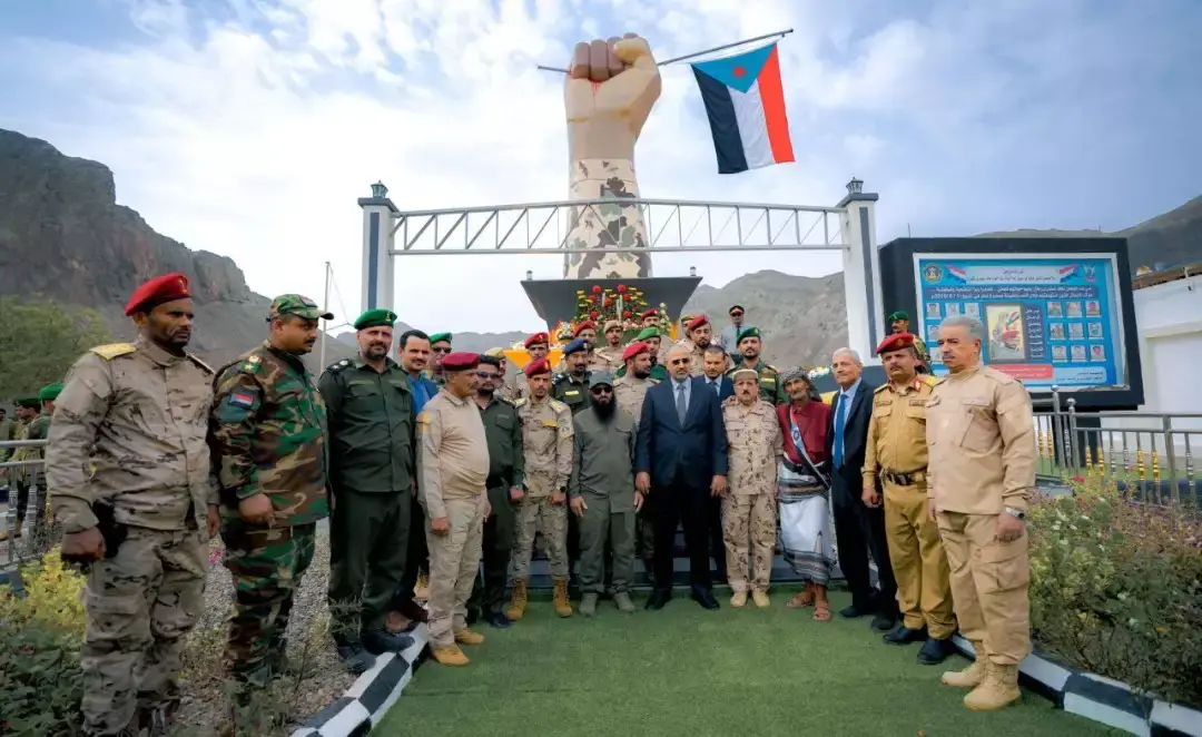 وخلال مراسم إزاحة الستار، وضع الرئيس الزُبيدي إكليلًا من الزهور أمام النصب، ثم قرأ الفاتحة على روح الشهيد ورفاقه الميامين، مشيدًا بالملاحم البطولية التي سطّرها الشهيد القائد منير اليافعي “أبو اليمامة” في المعارك التي خاضها ضد التنظيمات الإرهابية، ومواقفه الوطنية الخالدة منذ تأسيس المقاومة الجنوبية. وأكد الرئيس القائد أن دماء الشهيد القائد “أبو اليمامة” وكل الشهداء الأبرار ستظلّ نبراسًا يُضيء معالم الطريق لشعبنا الجنوبي في مسار ثورته المباركة حتى تحقيق الاستقلال الناجز، لافتًا إلى أن الوفاء للشهيد القائد “أبو اليمامة” وكل شهداء الجنوب يتجسّد في مواصلة السير على دربهم، وتعزيز التلاحم الوطني، وتثبيت دعائم الأمن والاستقرار في عموم محافظات الجنوب.