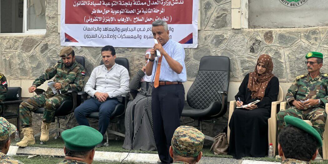 نظمت لجنة التوعية بسيادة القانون في وزارة العدل، صباح اليوم الأربعاء، سلسلة محاضرات قانونية توعوية لمنتسبي قوات الحزام الأمني في العاصمة عدن، ركزت على عدد من الظواهر المجتمعية ذات التأثير السلبي على الأمن والاستقرار.
