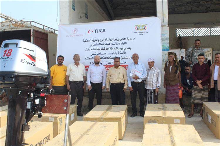 من جانبه أكد مدير وكالة تيكا للتنسيق والتعاون التركية في بلادنا يحيى اجو، أن هذه الدفعة الأولى من المحركات البحرية وعددها 21 محرك حديث ذات كفاءة عالية ضمن استراتيجية المشاريع التنموية وتحسين سبل العيش التي تنفذها الوكالة وسيكون لها مشاريع اخرى للصيادين في توزيع الشباك ومعدات الصيد، مشيرًا أنه سيناقش في لقاءات قادمة مع هيئة المصائد السمكية والجهات ذات العلاقة كيفية دعم المرأة الساحلية في خليج عدن وأي مشاريع أخرى قد يطلبها الصيادين وهيئة المصائد حسب الاحتياج.