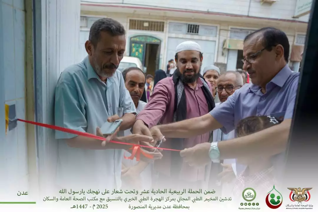 دشّنت السلطة المحلية في العاصمة عدن، مساء الثلاثاء الموافق 2 سبتمبر 2025، المخيم الطبي المجاني بمركز الهجرة الطبي الخيري في مديرية المنصورة، وذلك ضمن فعاليات الحملة الربيعية الثانية عشرة التي تُقام تحت شعار “على نهجك يا رسول الله”، بالتزامن مع احتفالات الأمة الإسلامية بذكرى المولد النبوي الشريف.
