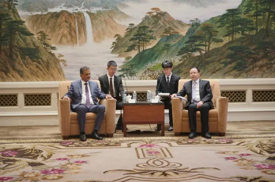 اجتمع أحمد لملس، محافظ عدن، برفقة وفد حكومي، اليوم الجمعة، مع نائب رئيس مجلس المؤتمر الاستشاري السياسي للشعب الصيني في شنغهاي، شاو تشي تشينغ، في إطار الزيارة الرسمية لتعزيز العلاقات الثنائية، وإحياء ذكرى التوأمة بين مدينتي عدن وشنغهاي.