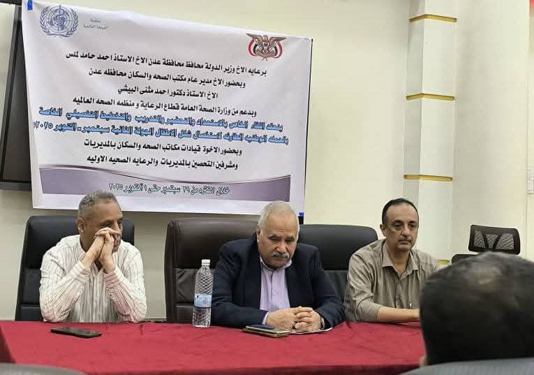 وناقش الاجتماع التحضيرات والاستعداد التام لتنفيذ الحملة الوطنية الطارئة للتحصين ضد شلل الاطفال ، من منزل الى منزل ، والتي سوف تنطلق يوم الاثنين المقبل خلال الفترة من 29سبتمبر الى1 اكتوبر 2025م.