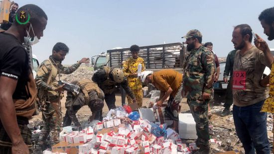 قوات الحزام الأمني تعلن إتلاف مواد مخدرة وسجائر مهربة في عدن