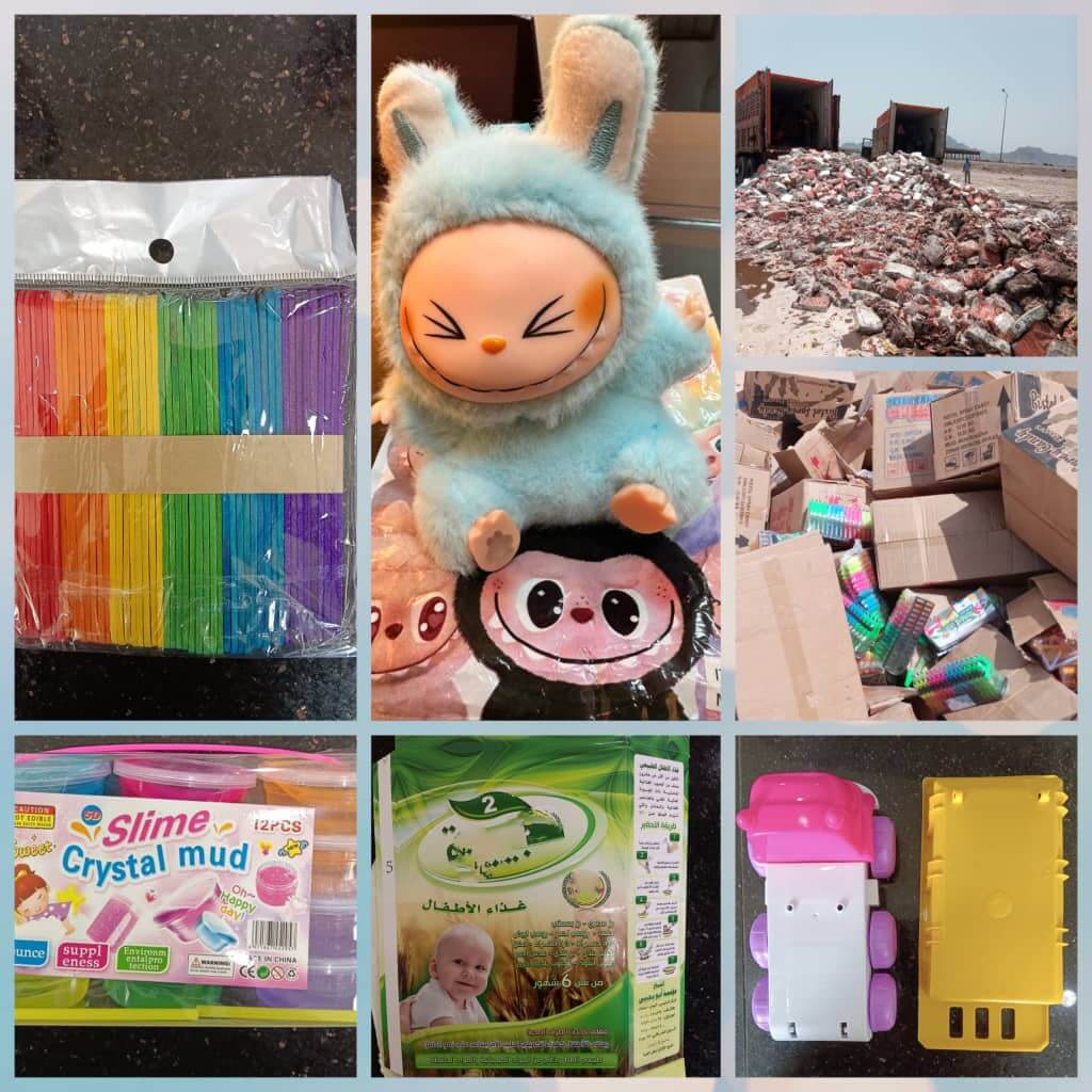 هيئة المواصفات تتصدى لمنتجات مخالفة: أدوات مدرسية وشحنات ألعاب تُرفض وتُتلف في عدن والمنافذ البرية