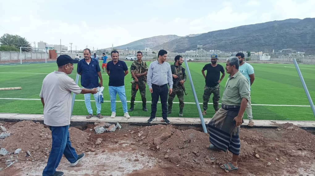 وخلال الزيارة، الذي رافقه فيها، مدير مكتبه بشير الغلابي، والقائم بأعمال مدير مكتب الأشغال بالمديرية المهندس علي ثابت، ورئيس نادي الجزيرة العميد خالد علوي، أطلع ” الدكتور الشوبجي “، على مستوى الإنجاز بالمشروع الذي يأتي تكملة لمشروع التسوية والردم بتمويل من سلطة المديرية، مؤكدًا على أهميته بالنهوض بقطاع الشباب والرياضة، ويهدف للحفاظ على أرضية الملعب وجاهزيتها للاستخدام خلال فترة وجيزة.