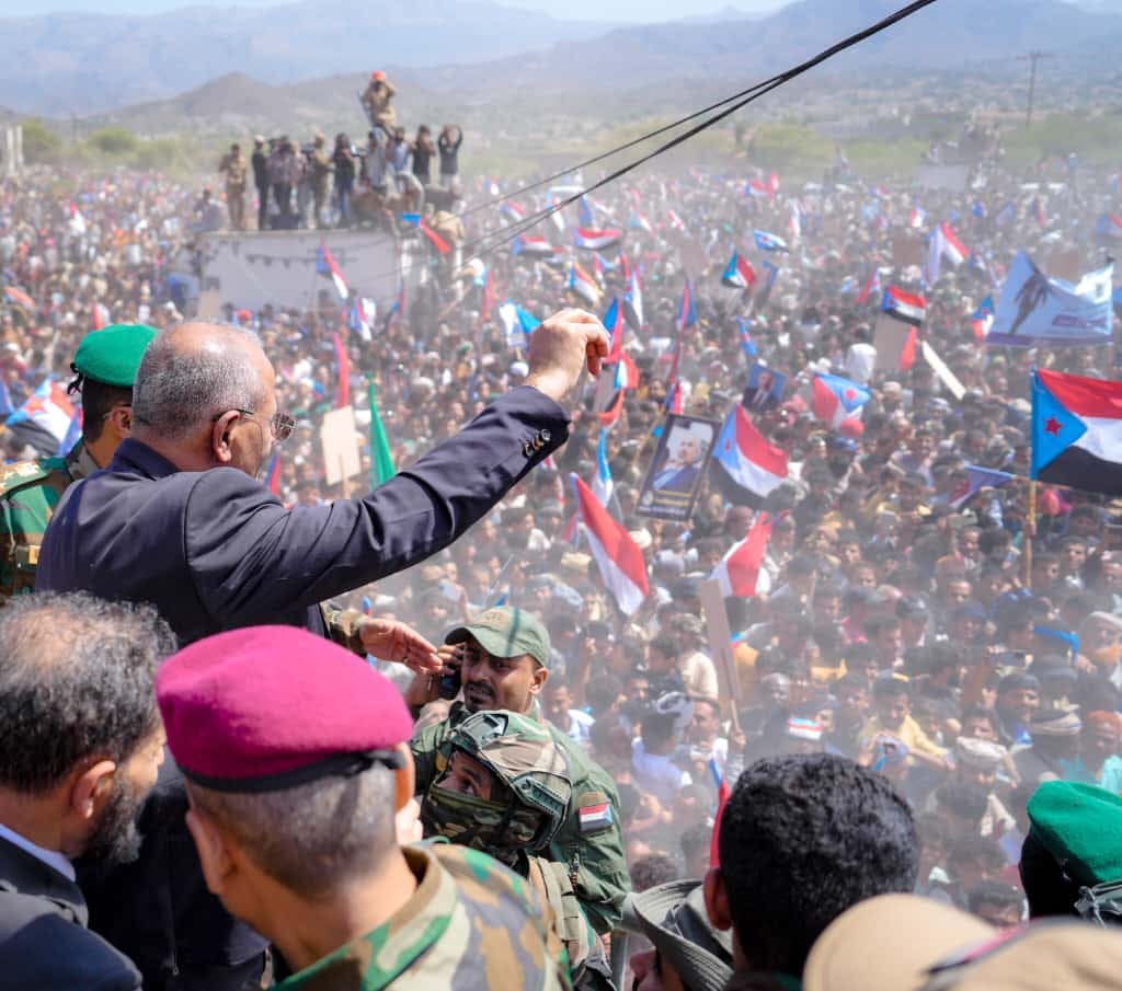 وتابعت: “اليوم، ردفان والضالع وحضرموت تفخر بمن جاء ليُحيي مجد ثورة الرابع عشر من أكتوبر المجيدة.. فهنيئًا لنا أفراح ثورتنا، وهنيئًا لشعبٍ أنت قائده”.