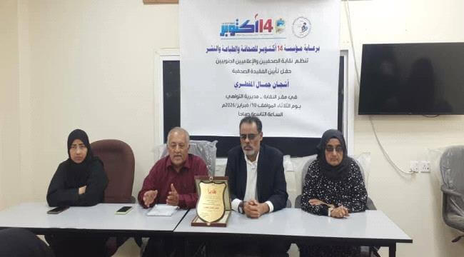 برعاية مؤسسة 14 أكتوبر للصحافة والطباعة والنشر، نظّمت نقابة الصحفيين والإعلاميين الجنوبيين، صباح اليوم الثلاثاء الموافق 10 فبراير 2026م، حفل تأبين للفقيدة أشجان جمال المقطري، في فعالية إنسانية مؤثرة خيّم عليها الحزن والوفاء، واستحضرت سيرة صحفية تركت أثرًا عميقًا في وجدان زميلاتها وزملائها وفي بلاط صاحبة الجلالة.