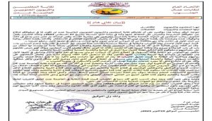 *صادر عن نقابة المعلمين والتربويين الجنوبيين العاصمة عدن.