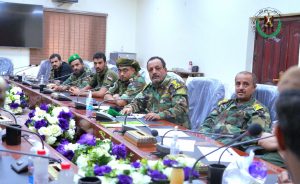 جاء ذلك خلال الاجتماع الدوري مع مدراء الإدارات العامة لقوات الحزام الأمني بمقر القيادة في معسكر الشعب حيث تطرق الاجتماع إلى جملة من القضايا والمواضيع ذات الصلة بالوضع الأمني وزيادة فعالية جهود قوات الحزام الأمني.