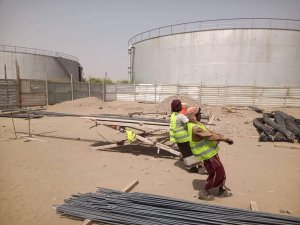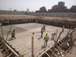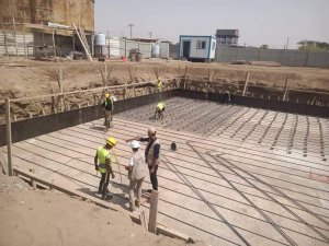 صور اُلتقطت، اليوم الجمعة، توضح تواصل اعمال مشروع إنشاء خزان مياه خرساني برجي بسعة (500 متر مكعب) في حقل مياه بئر ناصر بمديرية دار سعد في العاصمة عدن.