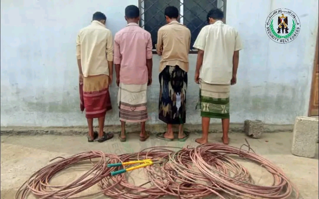 تمكنت قوات الحزام الأمني في العاصمة عدن من إلقاء القبض على عصابة تقوم بسرقة أسلاك وكيابل الضغط العالي في عدد من مناطق مديرية البريقة.