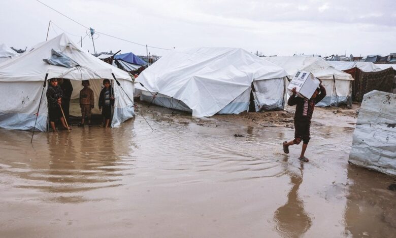 أخبار عربية ودولية منخفض جوي قاسٍ يفاقم معاناة نازحي غزة ويغرق خيامهم في بردٍ قاتل 28 ديسمبر 2025 ” مكتب الإعلام” وكالات: فاقمت الأمطار الغزيرة والرياح العاتية، التي رافقت المنخفض الجوي المستمر منذ