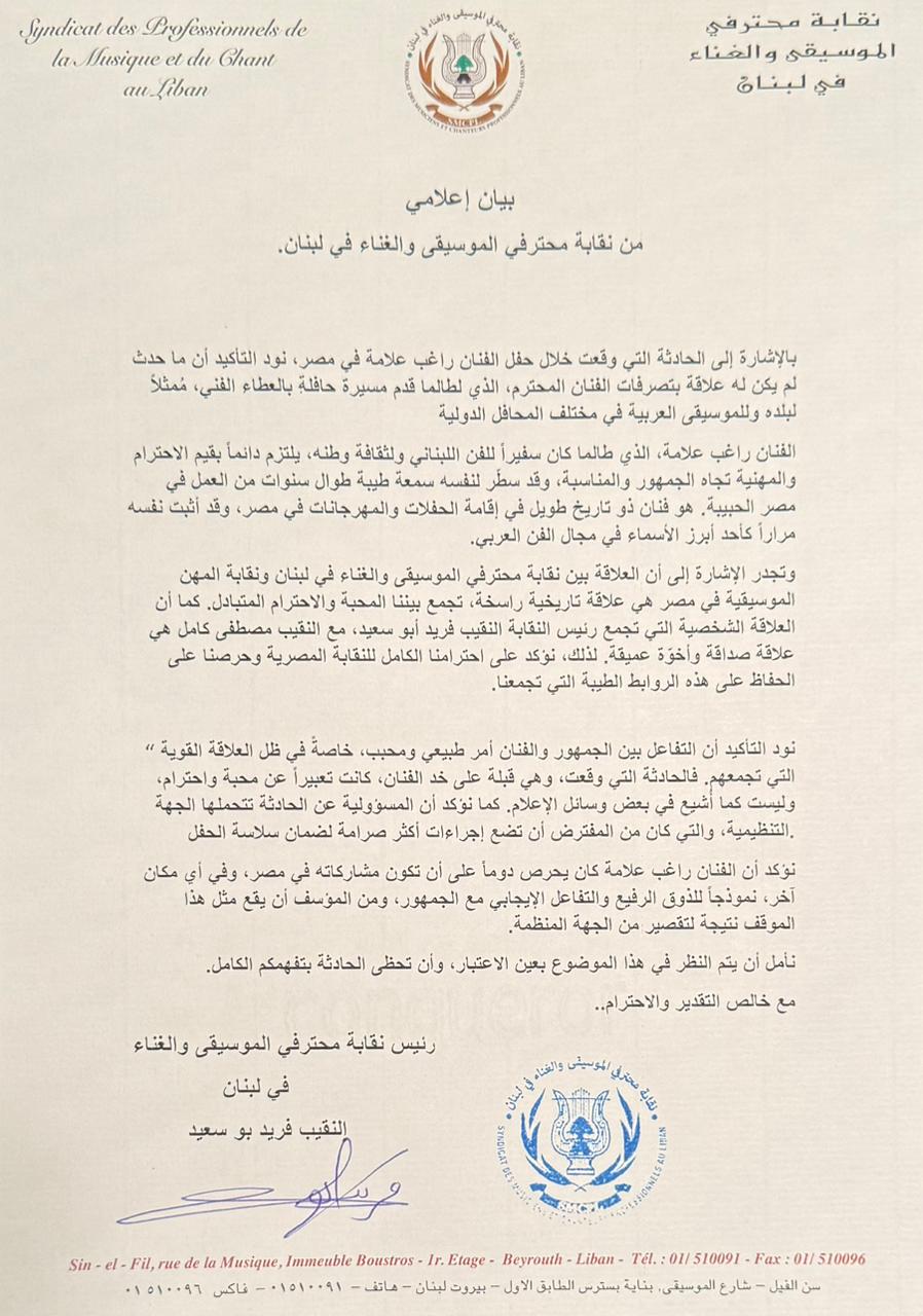 ثقافة وفن راغب علامة يدافع عن نفسه ونقابة الموسيقيين في لبنان تعلّق 25 يوليو 2025 “مكتب الإعلام” وكالات: بعد نفيه لبيان صحافي يتم تداوله على بعض المنصات وتأكيده أنه