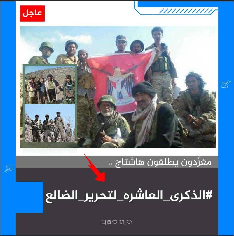 ملفات وتقارير جنوبيون يطلقون وسم #الذكرى_العاشره_لتحرير_الضالع تزامنا مع ذكرى تحريرها الـ(10) من ميليشيا الحوثي الإرهابية 24 مايو 2025 الضالع / العاصمة الجنوبية عدن / مكتب الإعلام/خاص: تزامنًا مع حلول الذكرى الـ10