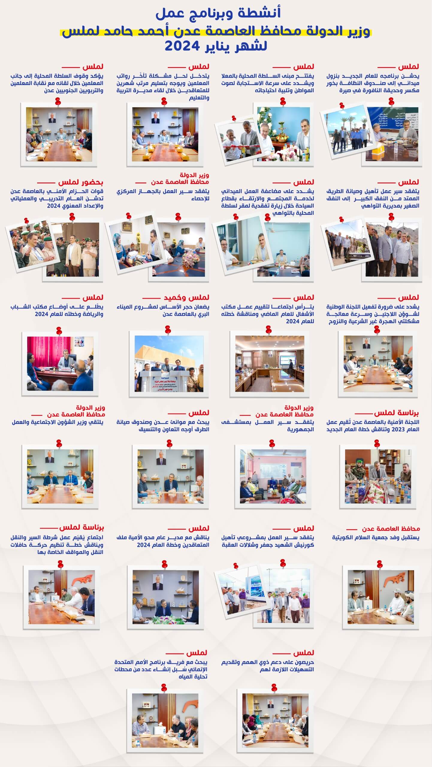 أخبار انفوجرافيك يبين تحركات محافظ العاصمة عدن خلال يناير المنصرم 9 فبراير 2024 العاصمة عدن “مكتب الإعلام” خاص: يُبين الانفوجرافيك، كافة أنشطة وبرنامج عمل وزير الدولة، محافظ